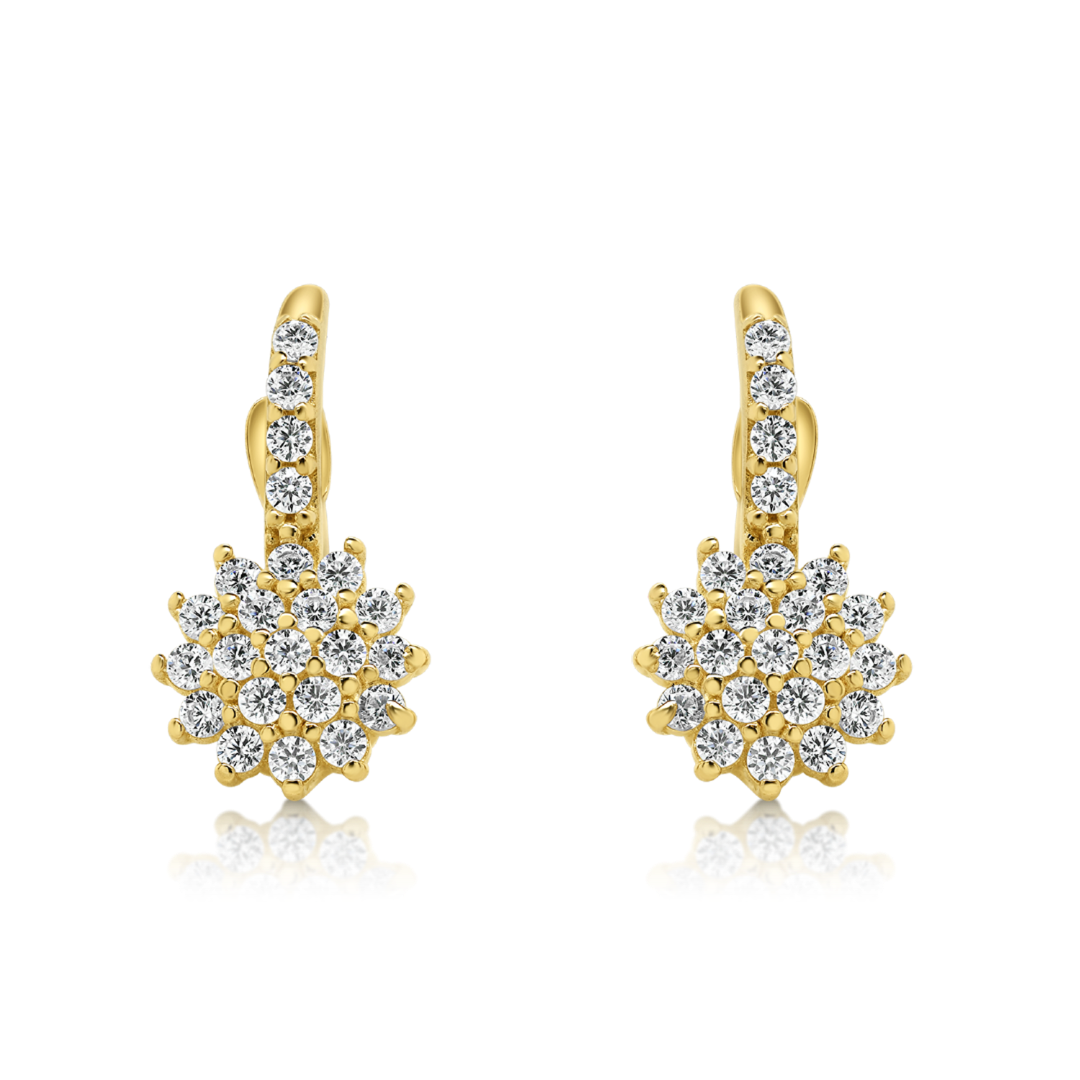 Cercei din aur galben de 14K cu pietre Cubic Zirconia.