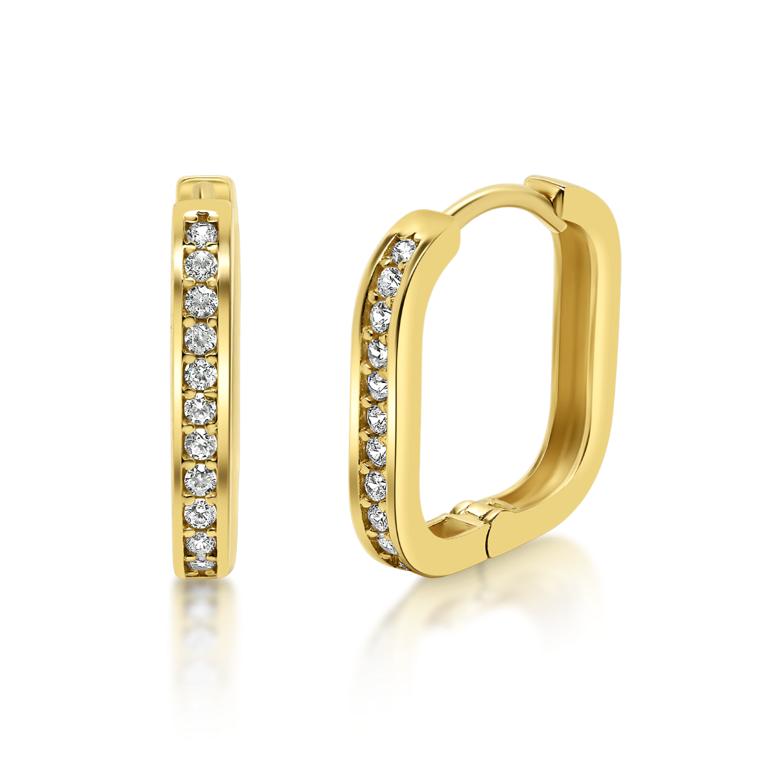 Cercei din aur galben de 14K cu pietre Cubic Zirconia albe.