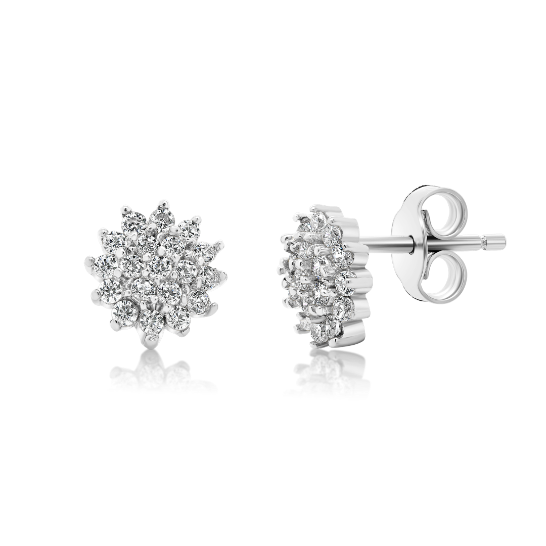 Cercei din aur alb de 14K cu pietre Cubic Zirconia albe.