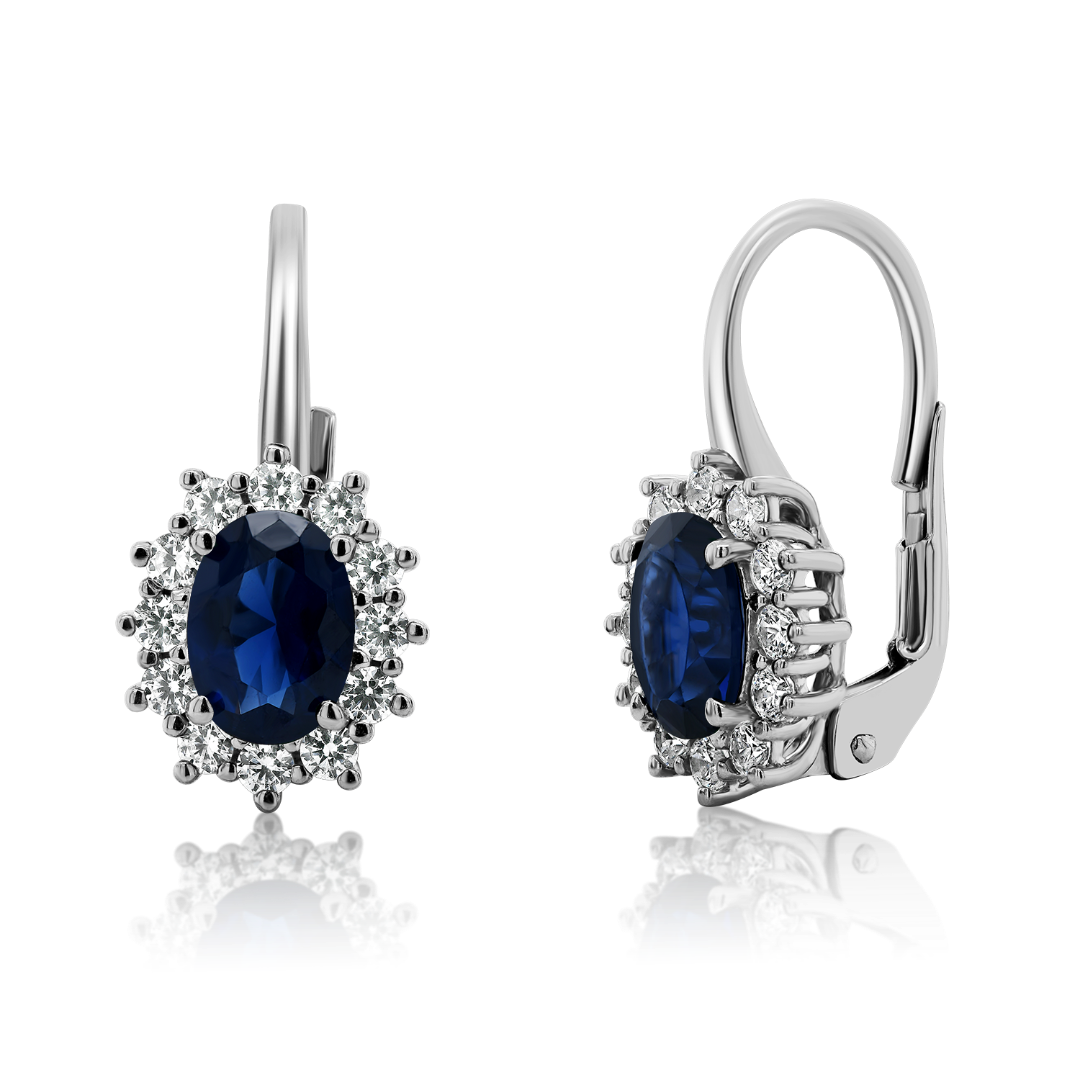 Cercei din aur alb de 14K, cu pietre Cubic Zirconia albastre și albe