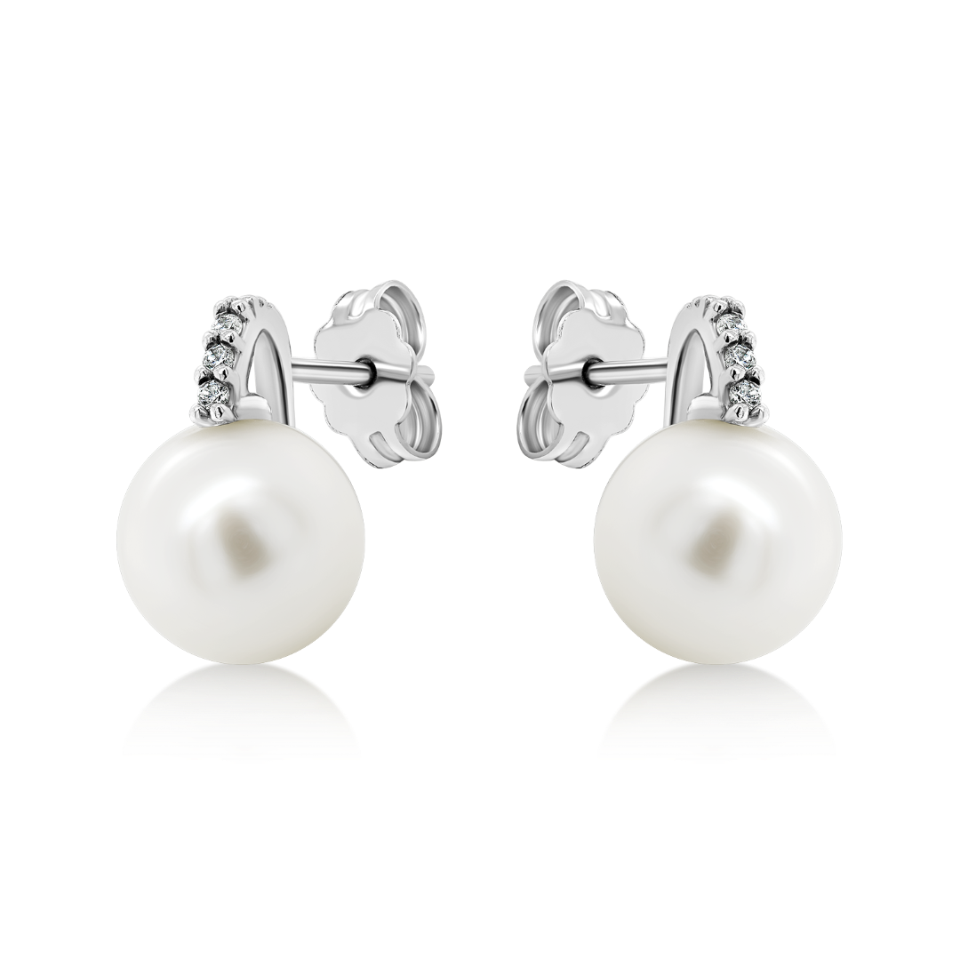 Cercei din aur alb de 14K, cu Perle de cultură  și pietre cubic zirconia.