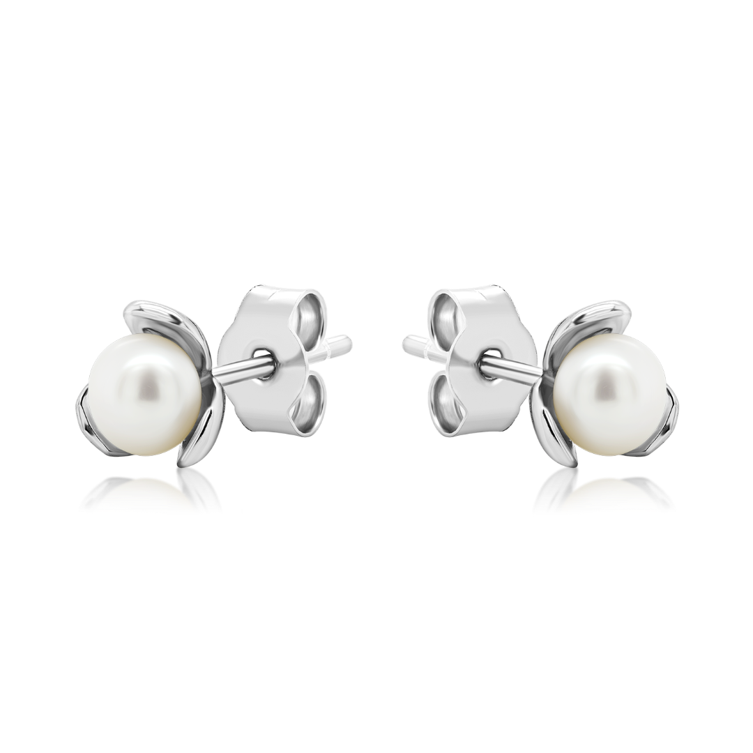 Cercei din aur alb de 14K cu Perle