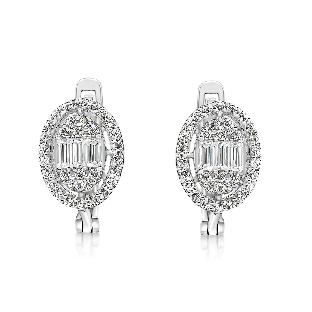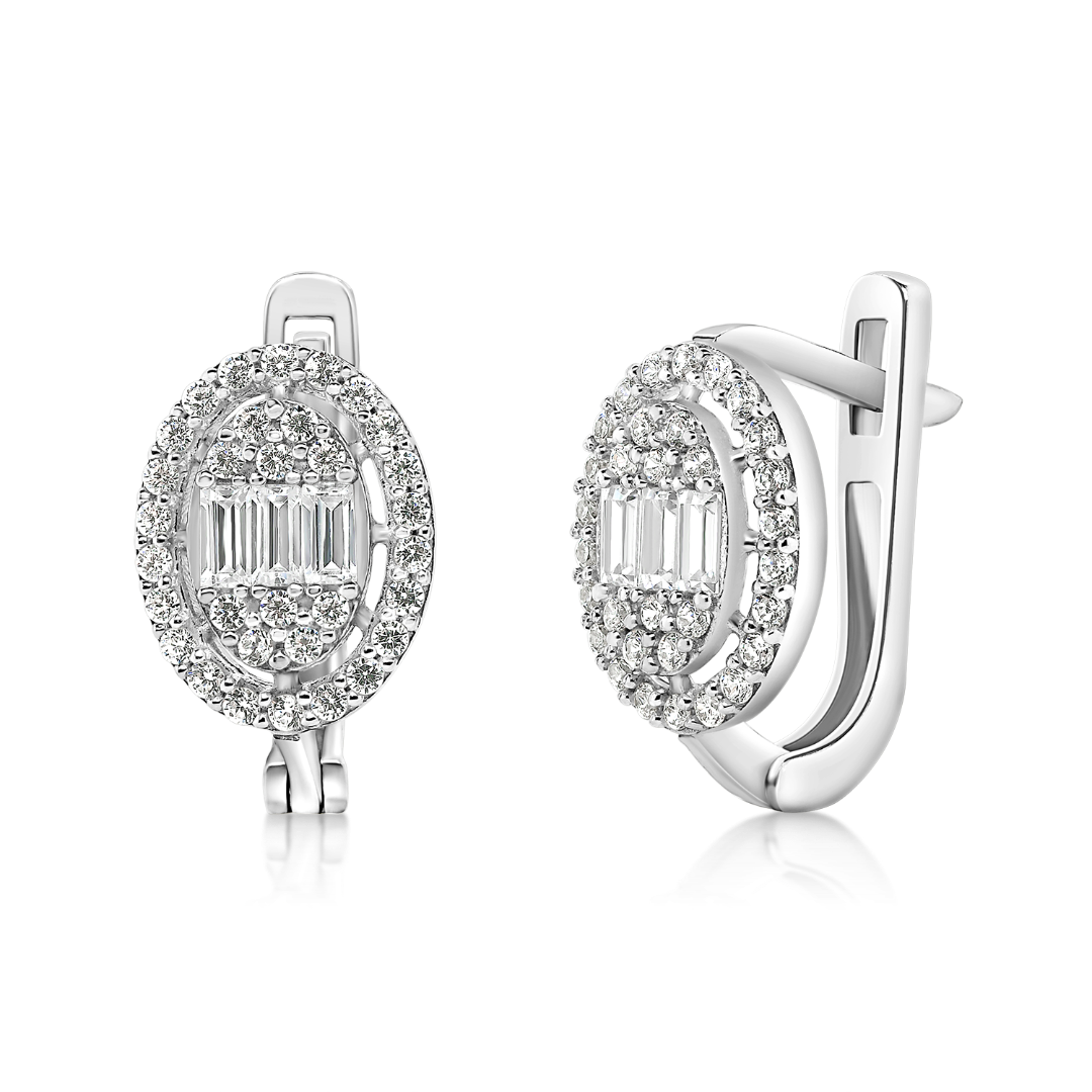 Cercei din aur alb de 14K cu pietre Cubic Zirconia albe.