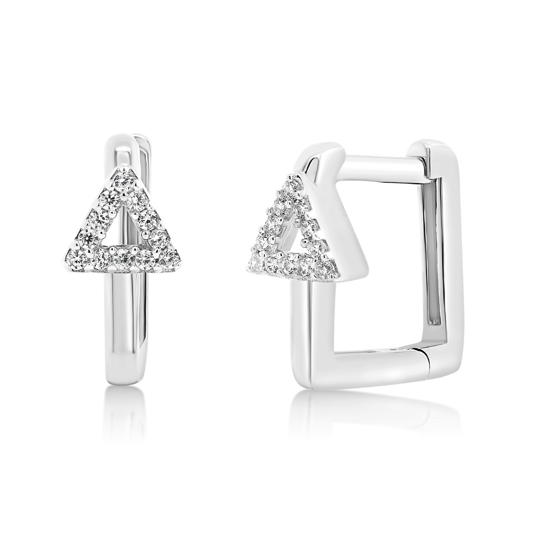 Cercei cu element triunghi din aur alb de 14K cu pietre cubic zirconia.