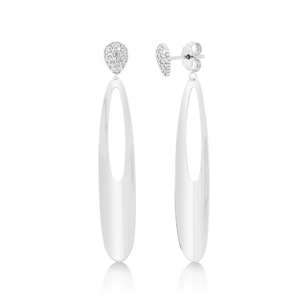 Cercei din aur alb de 14K cu pietre cubic zirconia.