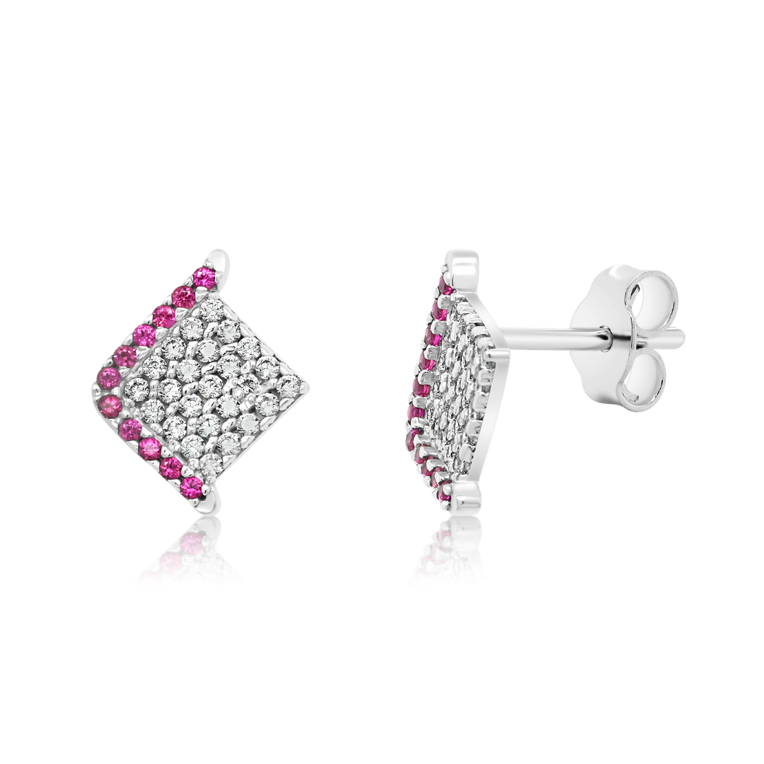 Cercei din aur alb de 14K cu pietre Cubic Zirconia incolore și roz.