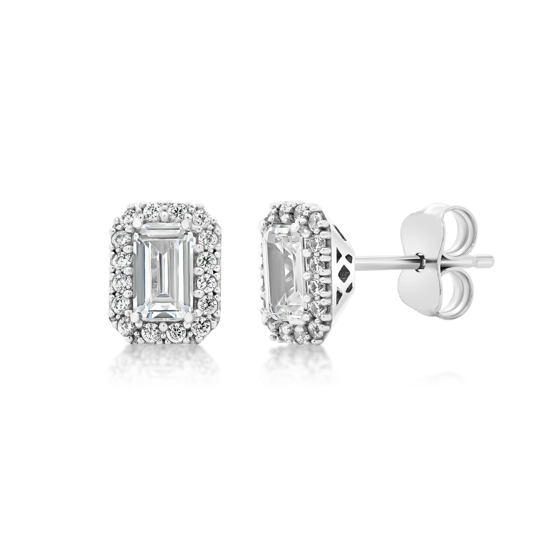 Cercei din aur alb de 14K cu pietre cubic zirconia.