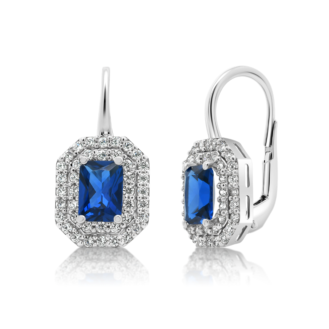 Cercei din aur alb de 14K cu pietre cubic zirconia incolore și albastre.