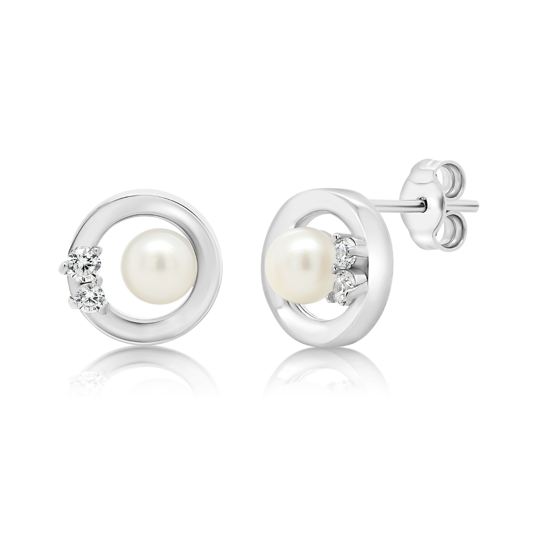 Cercei din aur alb de 14K, cu Perle de cultură și pietre cubic zirconia.