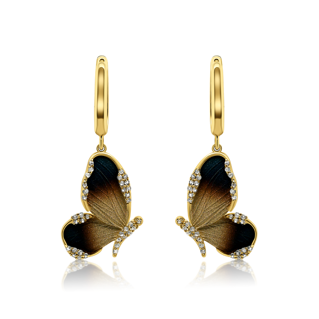 Cercei în formă de fluture din aur galben de 14K, încrustați cu 72 de Safire incolore de 0.36ct.