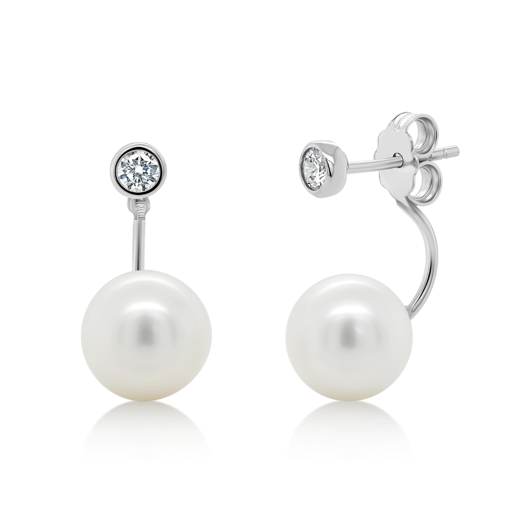 Cercei din aur alb de 14K cu piatră Cubic Zirconia și Perlă. Cerceii sunt detașabili, se pot purta cu Perlă sau fără.