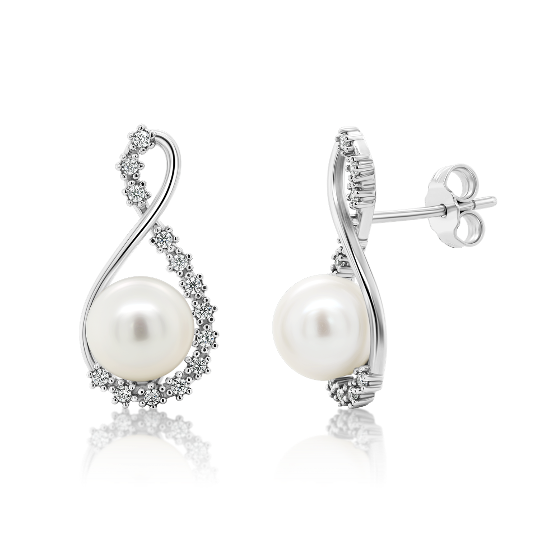 Cercei din aur alb de 14K cu pietre Cubic Zirconia și Perle.