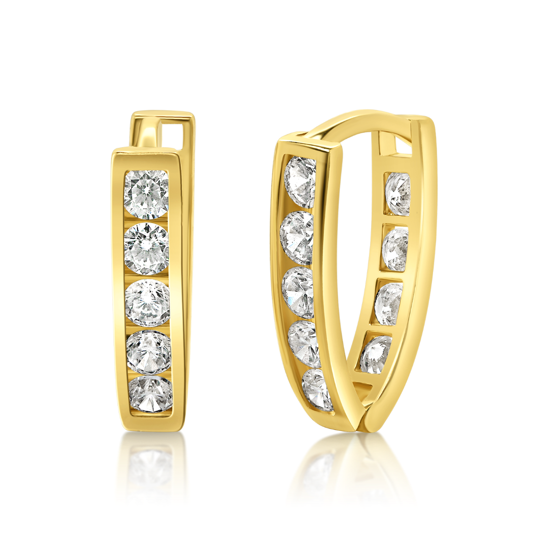 Cercei din aur galben de 14K cu pietre Cubic Zirconia albe.