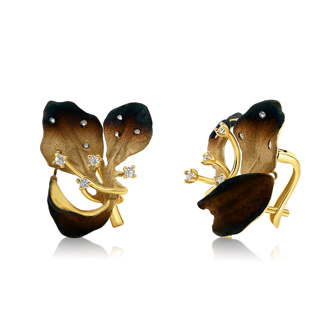 Cercei din aur galben de 14K cu Safire incolore