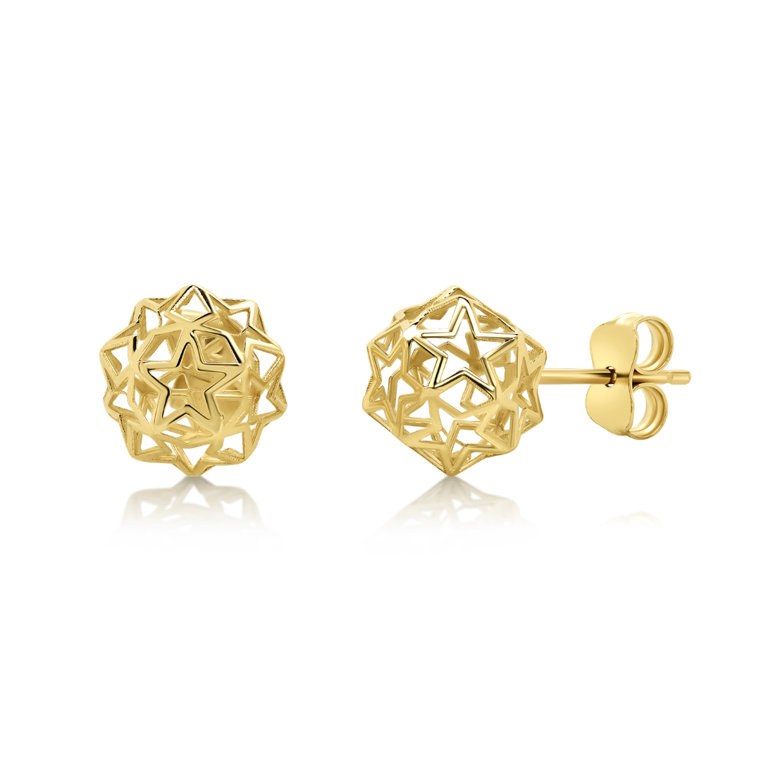 Cercei din aur galben de 14K cu decupaje în formă de stea.