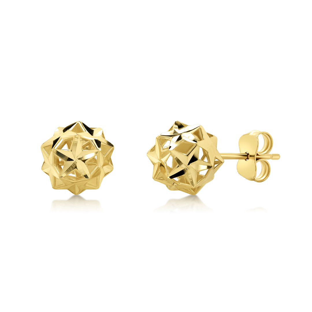 Cercei din aur galben de 14K, cu elemente fațetate în formă de stea.