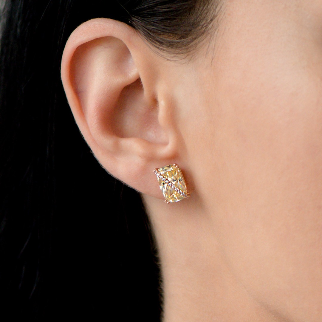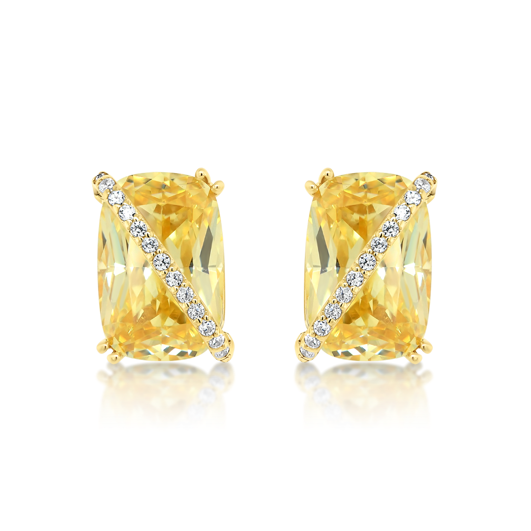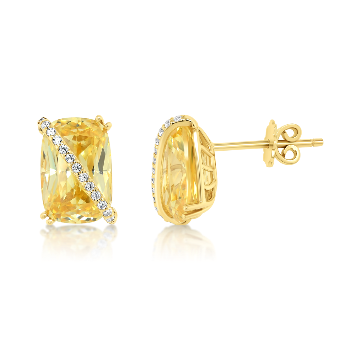 Cercei din aur galben de 14K cu pietre cubic zirconia.