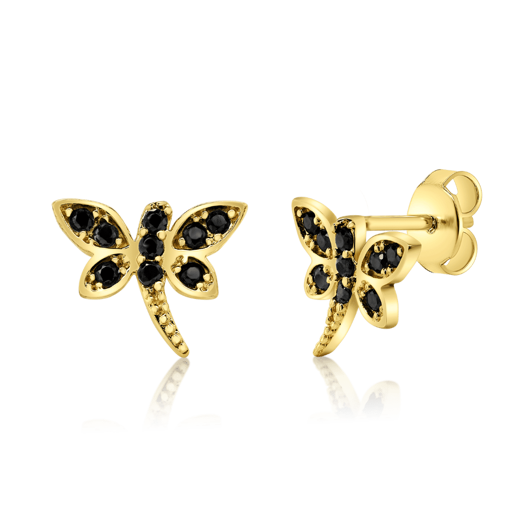 Cercei din aur galben de 14K cu pietre cubic zirconia negre.