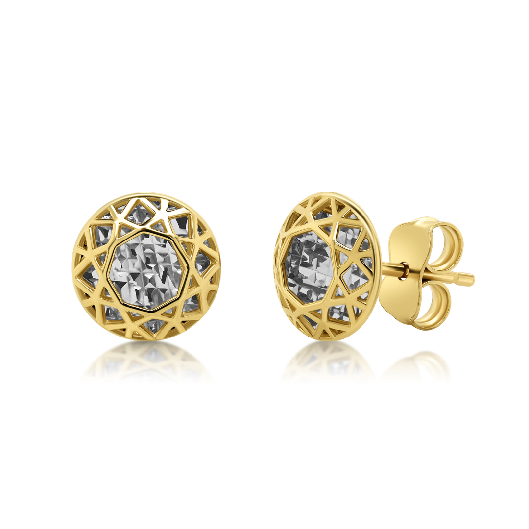 Cercei din aur galben de 14K cu elemente fațetate din aur alb.