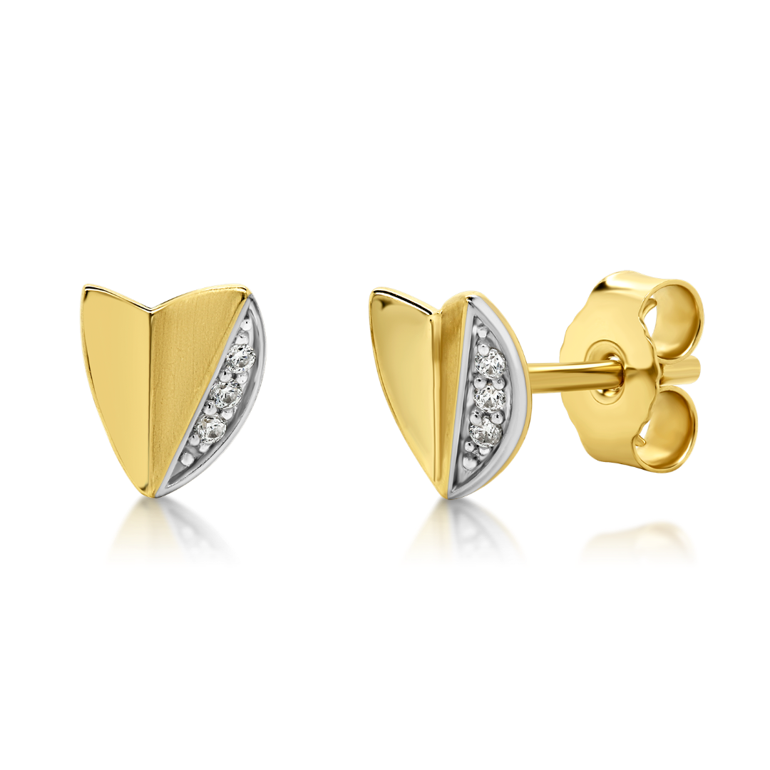 Cercei din aur galben de 14K cu element mat, rodiu alb și pietre cubic zirconia.