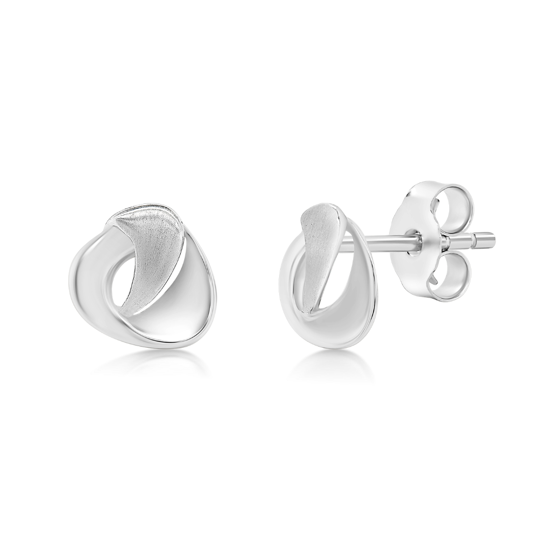 Cercei din aur alb de 14K cu elemente mate.