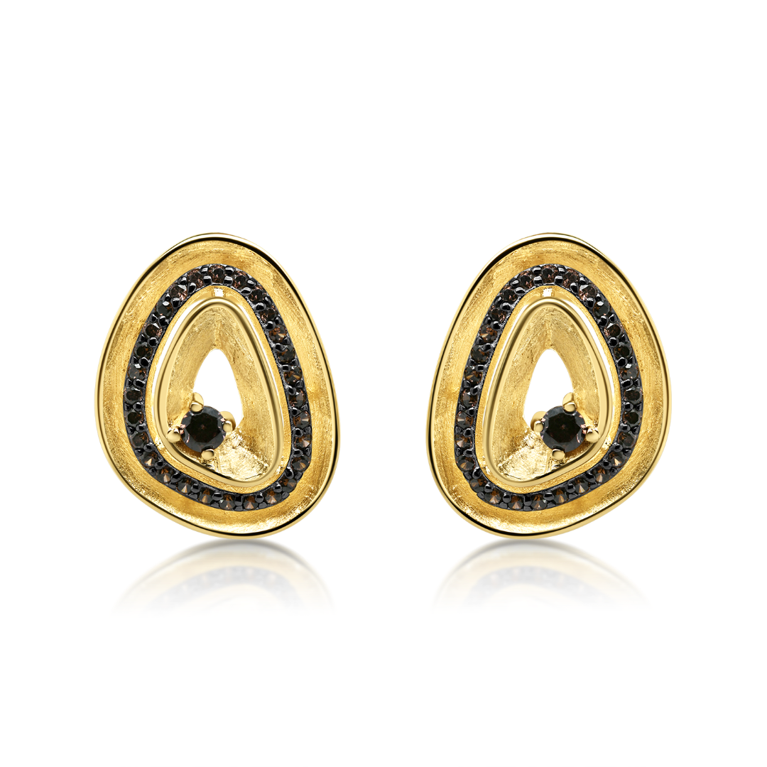 Cercei din aur galben de 14K, cu elemente mate și pietre Cubic Zirconia maro.