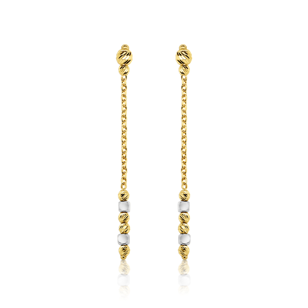 Cercei din aur galben de 14K, cu elemente din aur alb și biluțe fațetate.