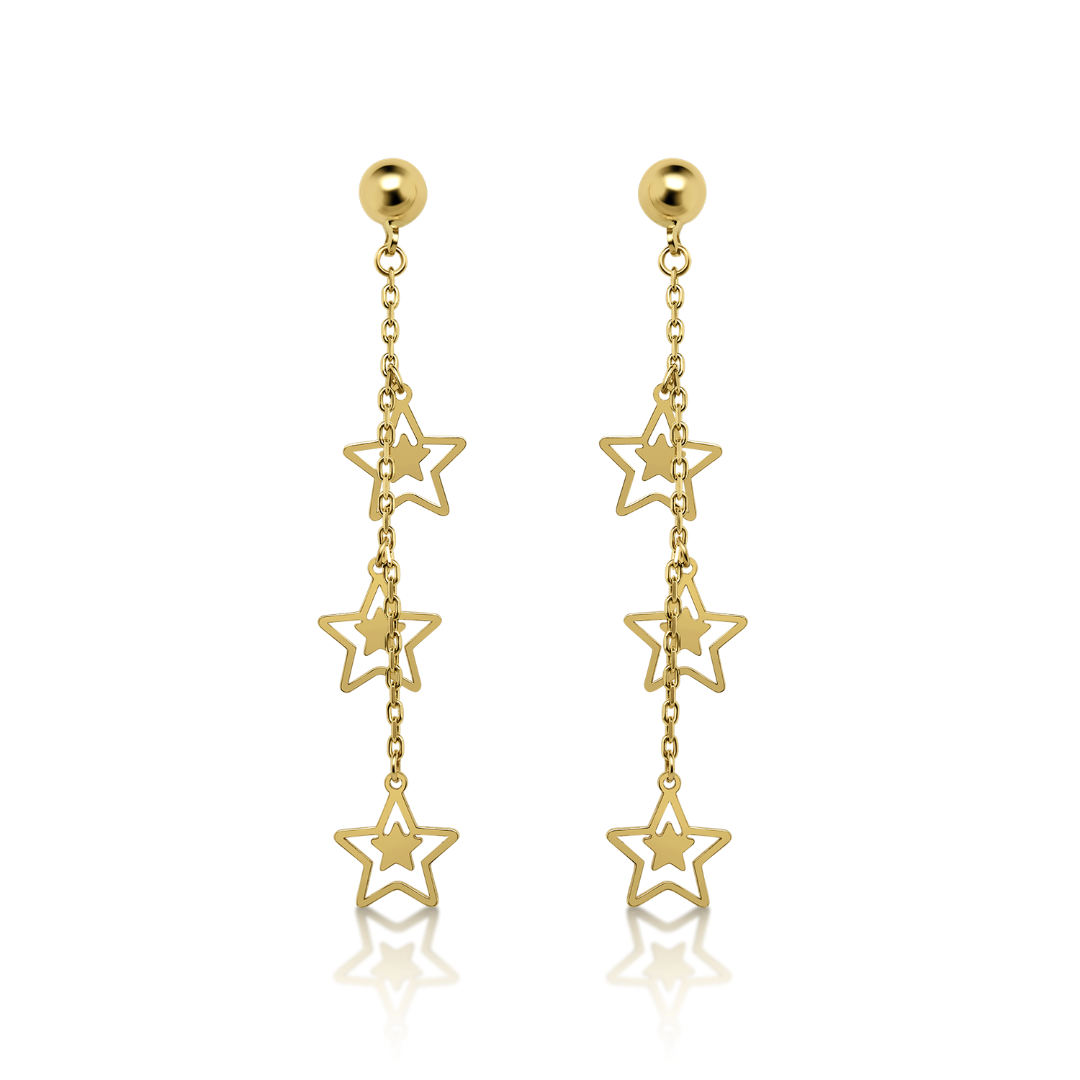 Cercei din aur galben de 14K, cu pandante în formă de stea