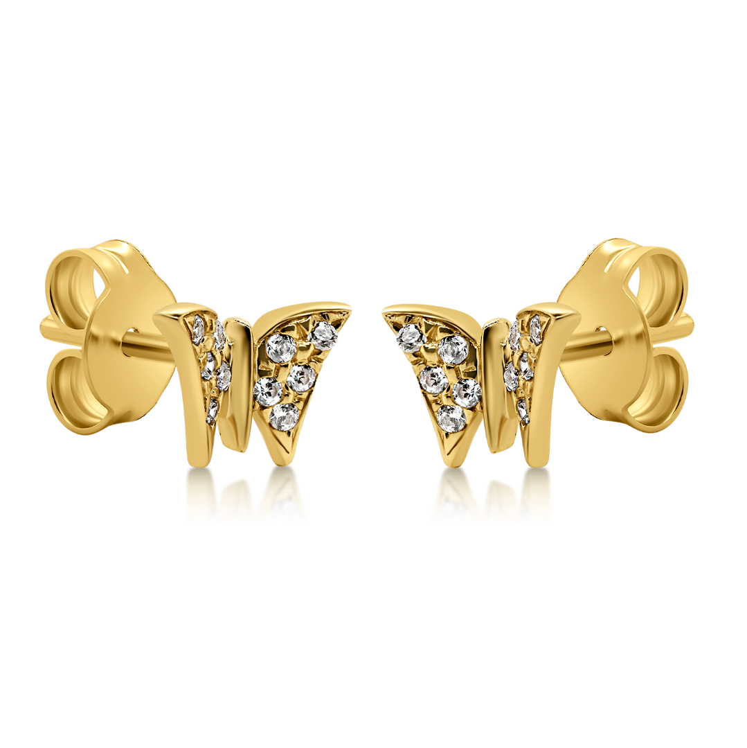 Cercei în formă de fluture din aur galben de 14K cu pietre cubic zirconia.