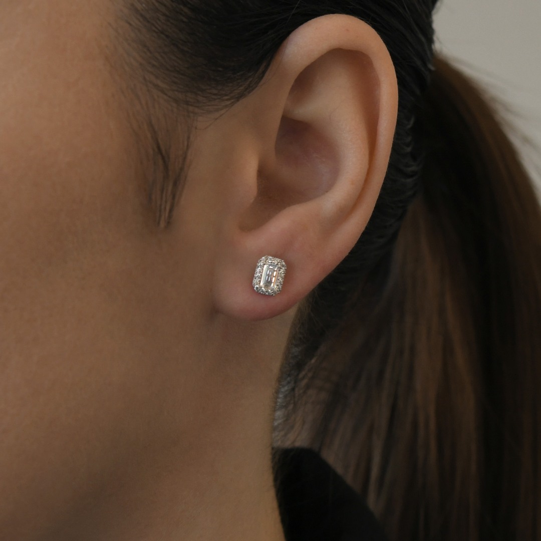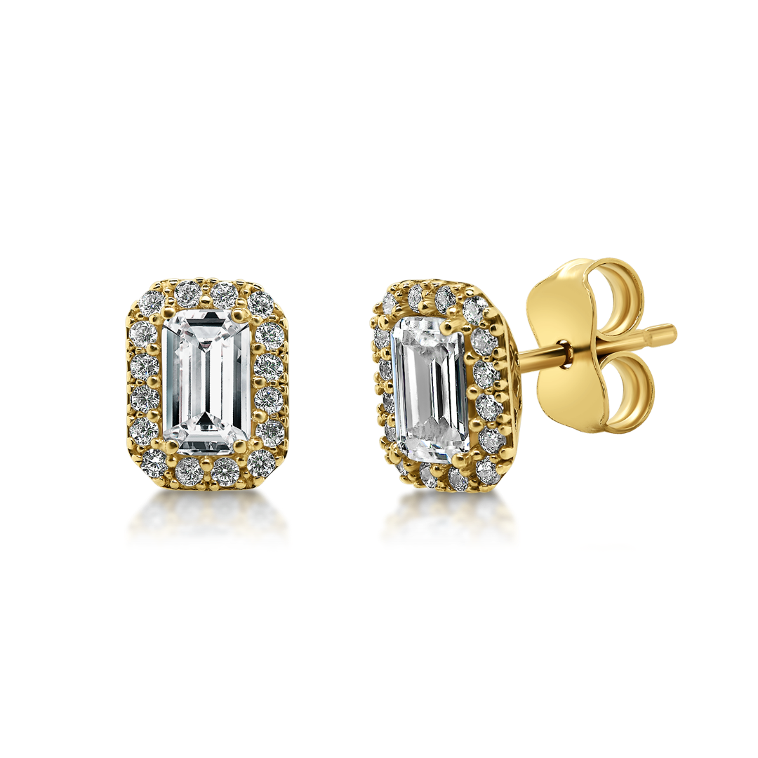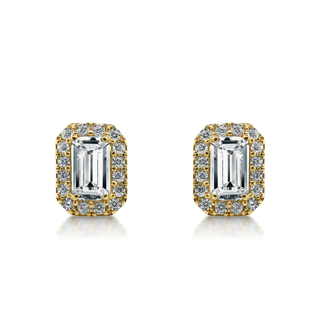 Cercei din aur galben de 14K cu zirconia incolore.