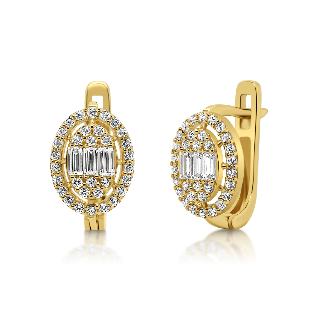 Cercei din aur galben de 14K încrustați cu pietre Cubic Zirconia albe.