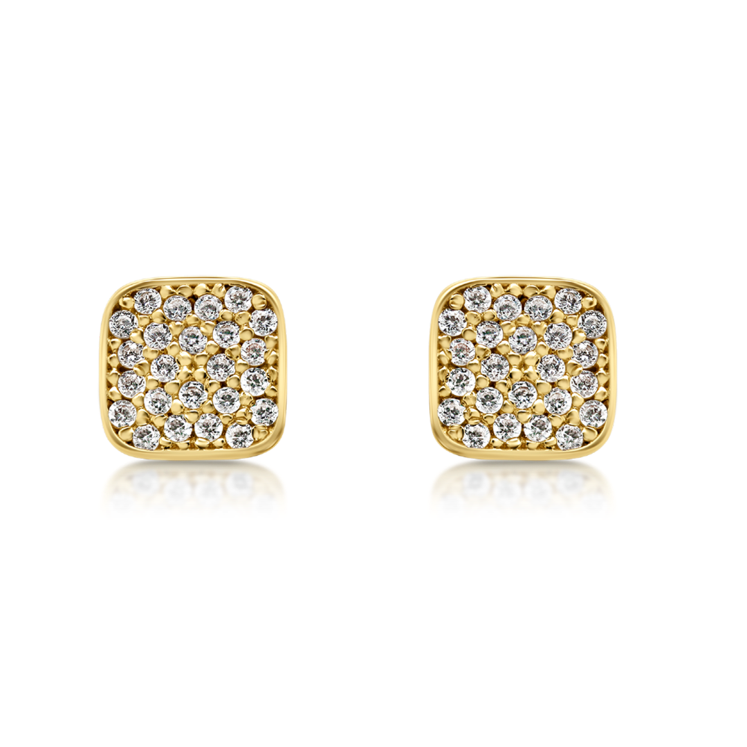 Cercei din aur galben de 14K cu pietre cubic zirconia.