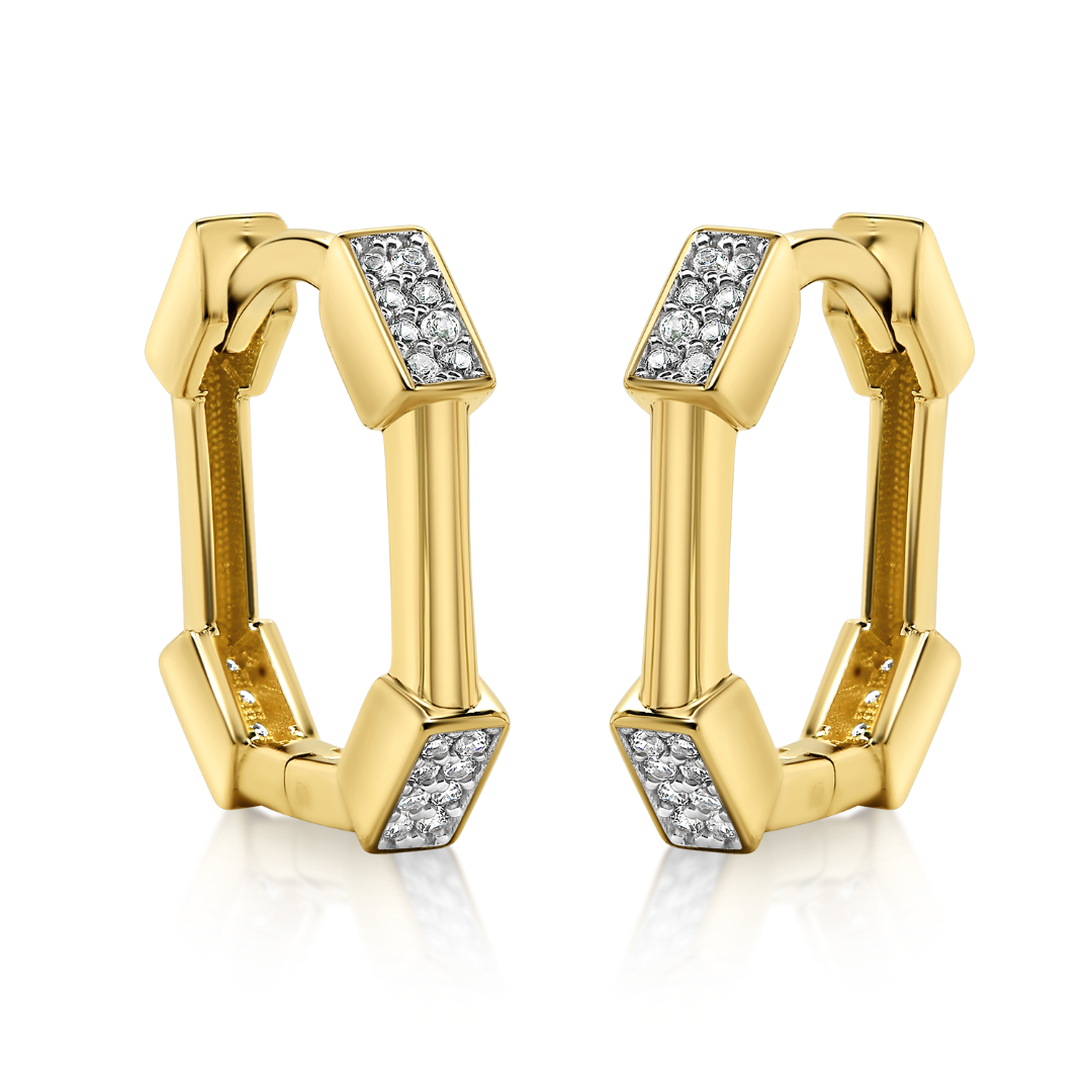 Cercei din aur galben de 14K, cu Rodiu alb și pietre Cubic Zirconia.