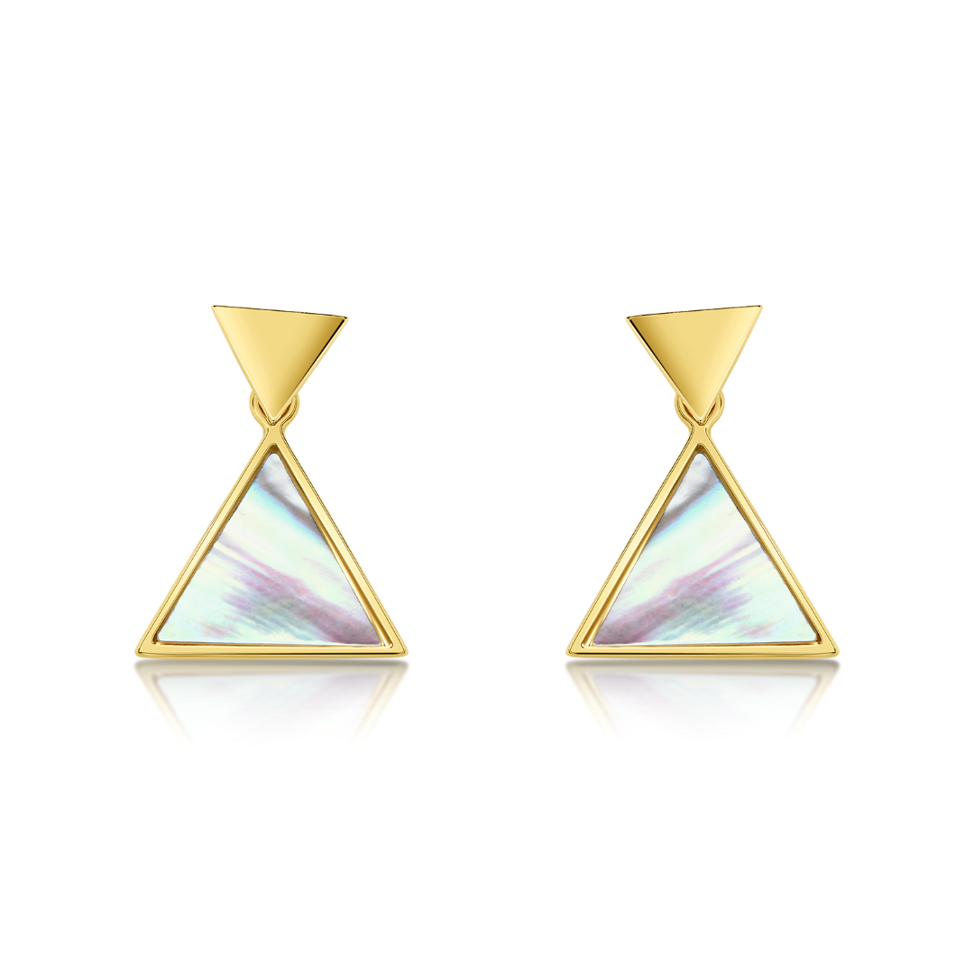 Cercei cu elemente geometrice din aur galben de 14K și Sidef.