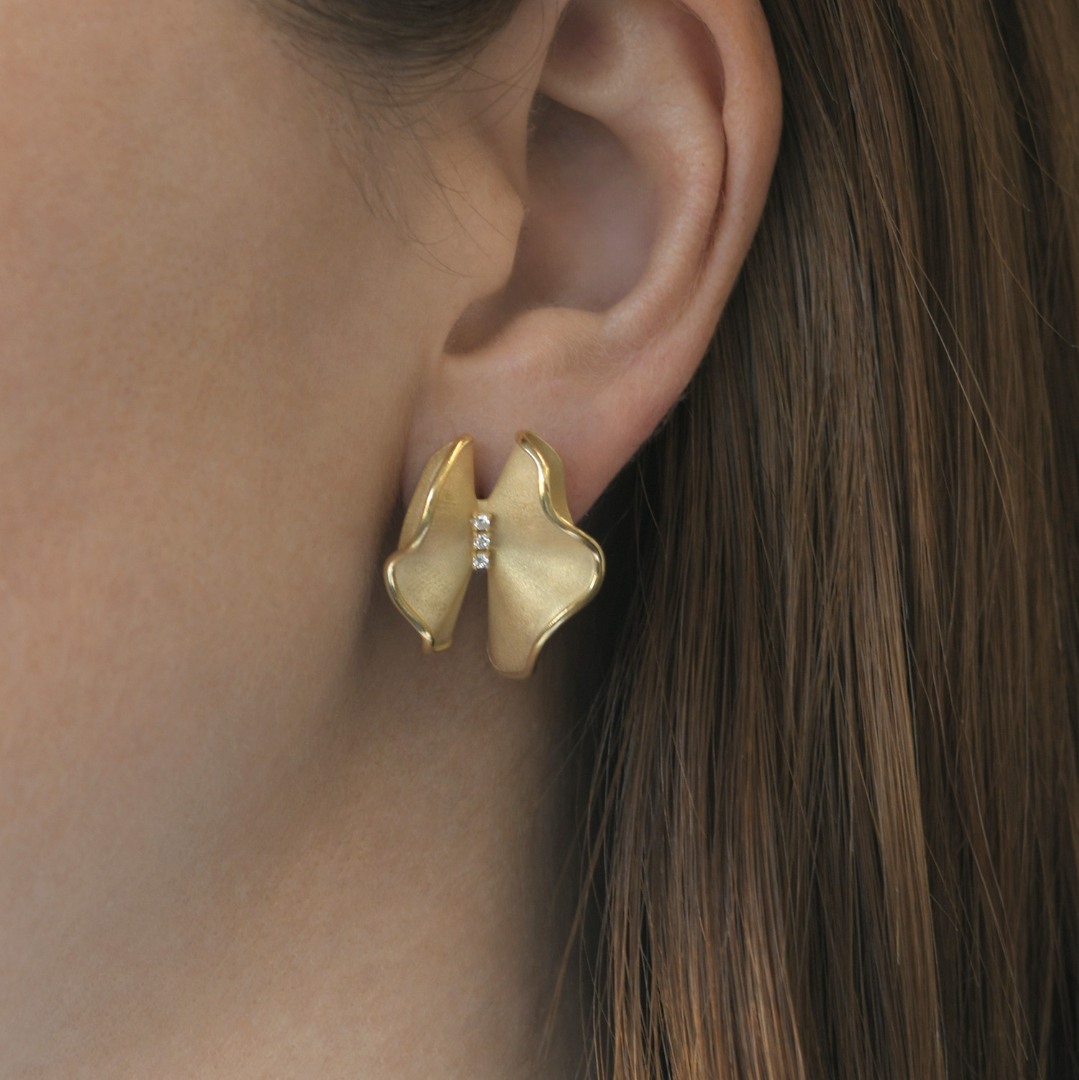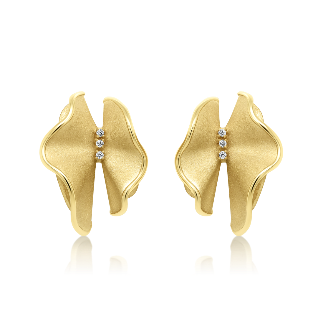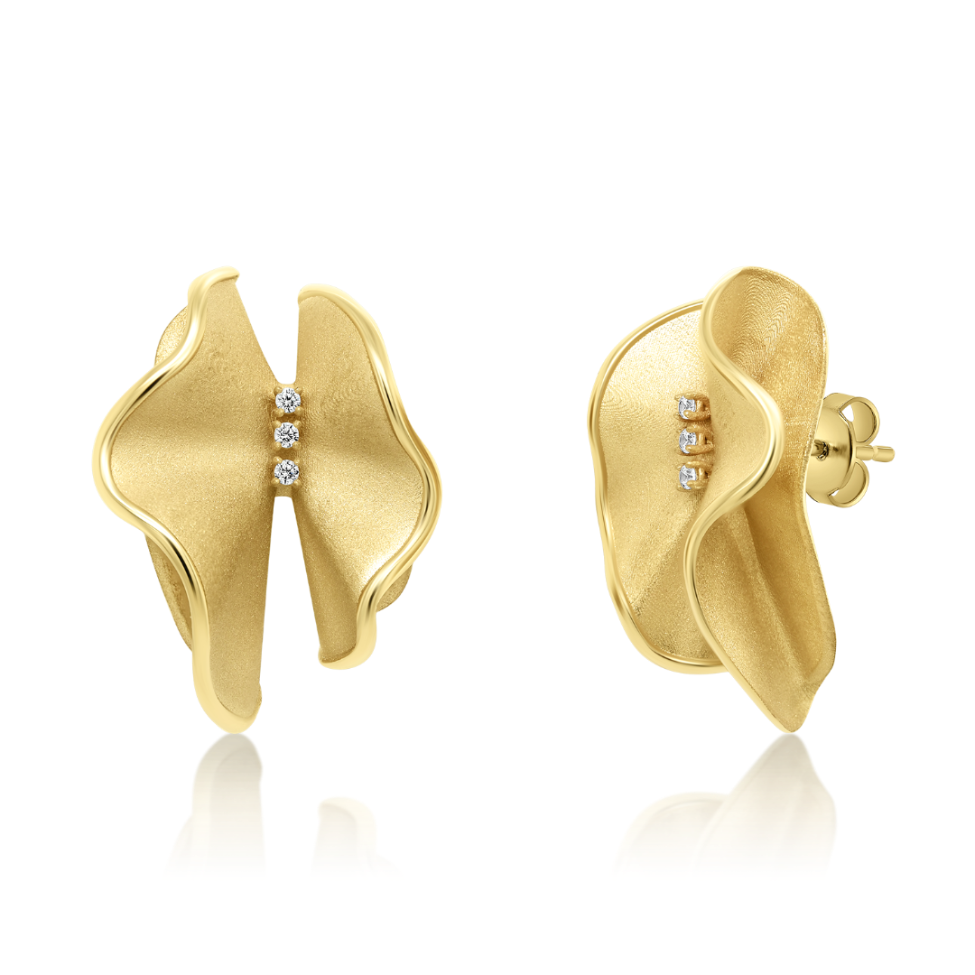 Cercei cu efect satinat din aur galben de 14K
