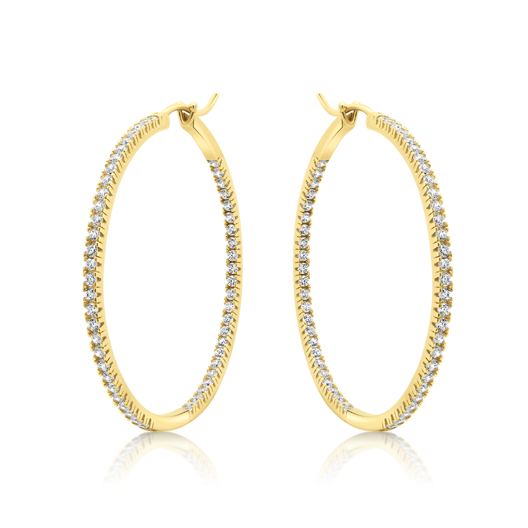Cercei creole din aur galben de 14K cu pietre cubic zirconia.
