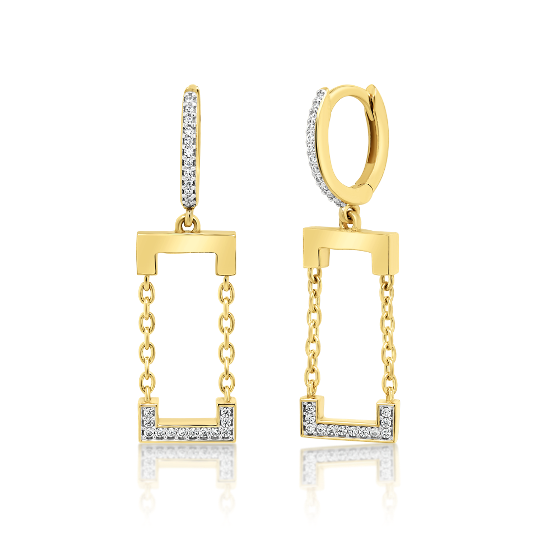 Cercei din aur galben de 14K cu pietre cubic zirconia.