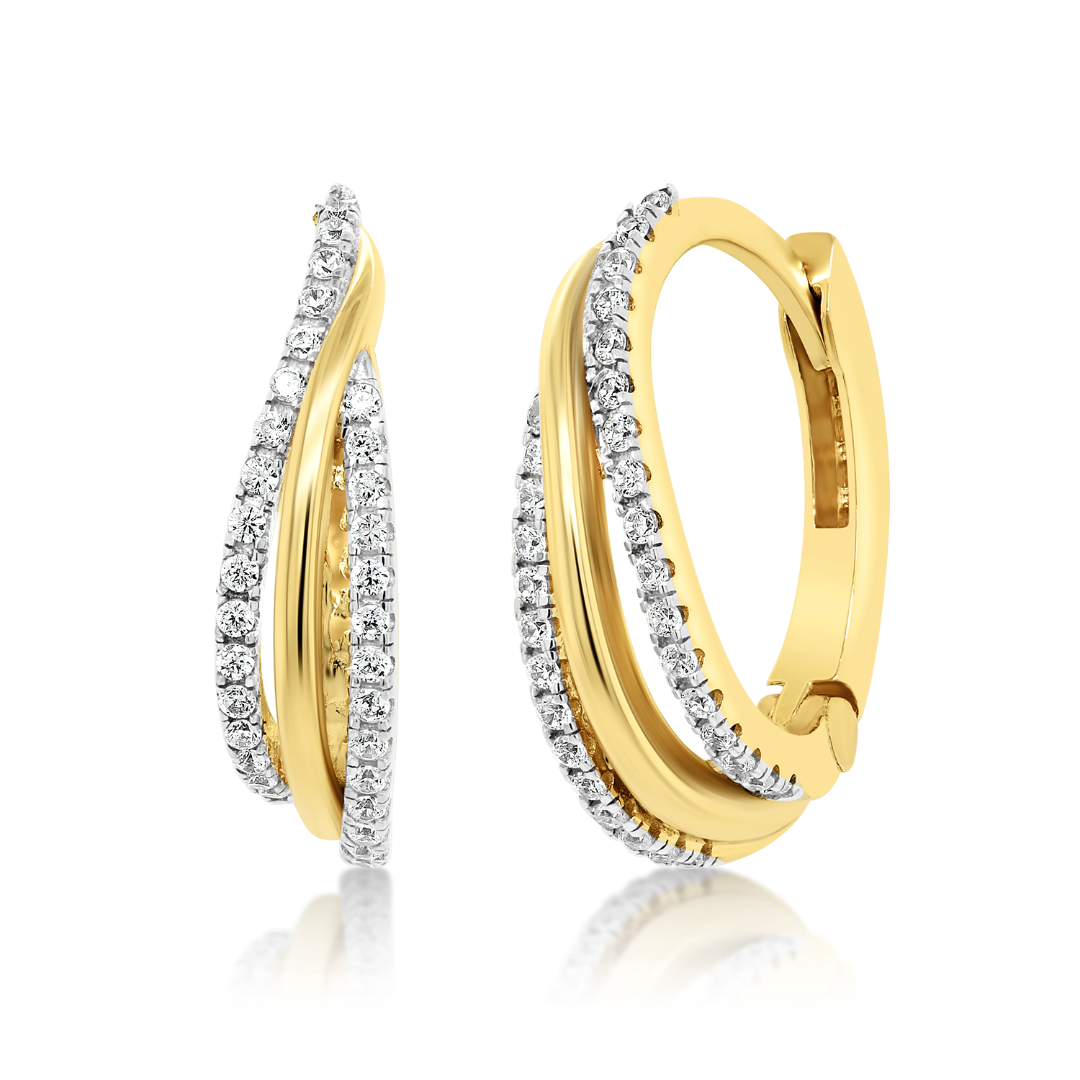 Cercei din aur galben de 14K cu pietre Cubic Zirconia.