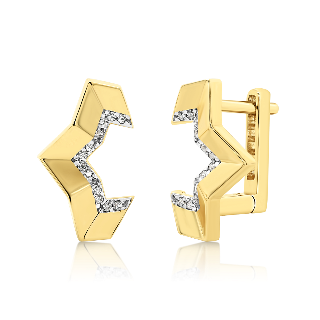 Cercei în formă de stea din aur galben de 14K, cu pietre Cubic Zirconia albe.