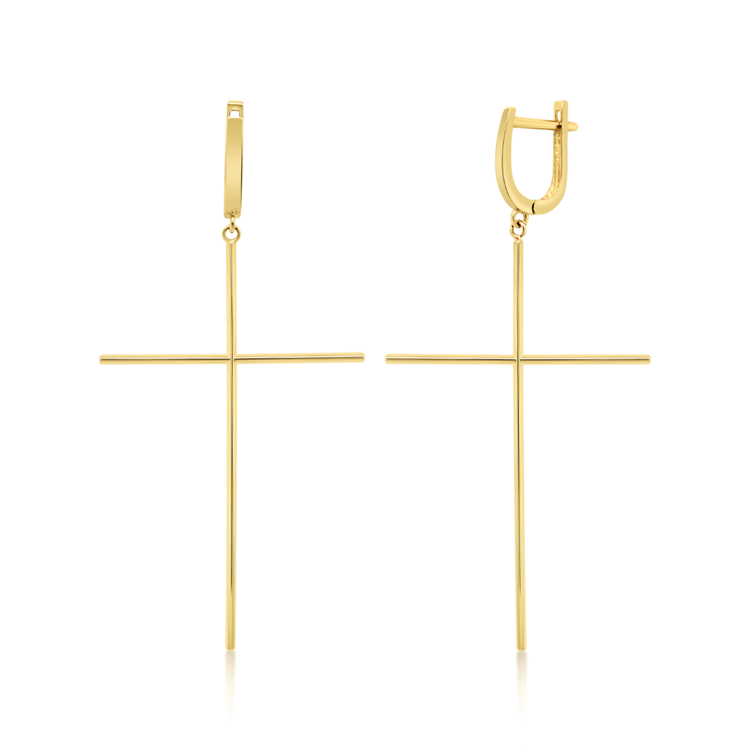 Cercei cruce din aur galben de 14K.