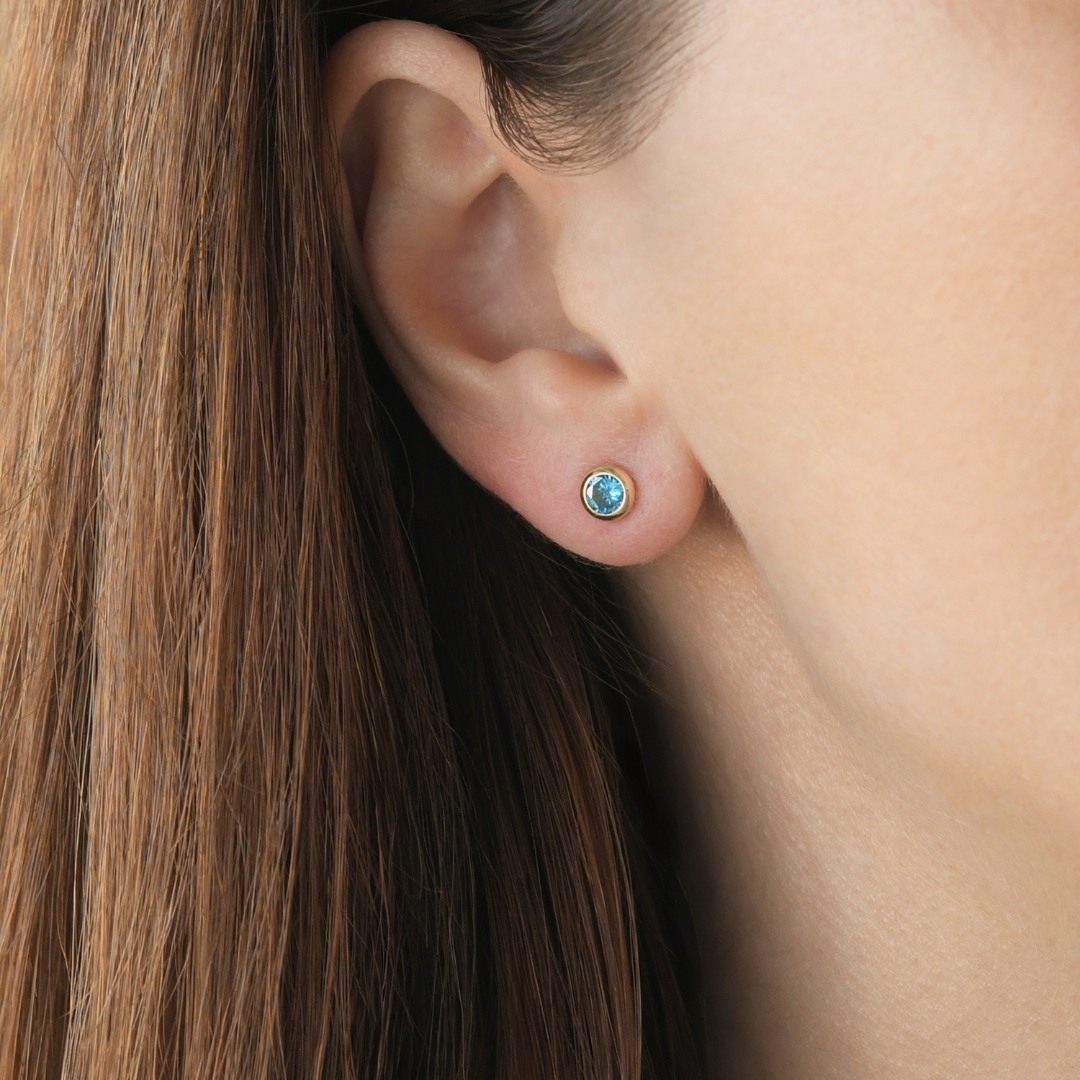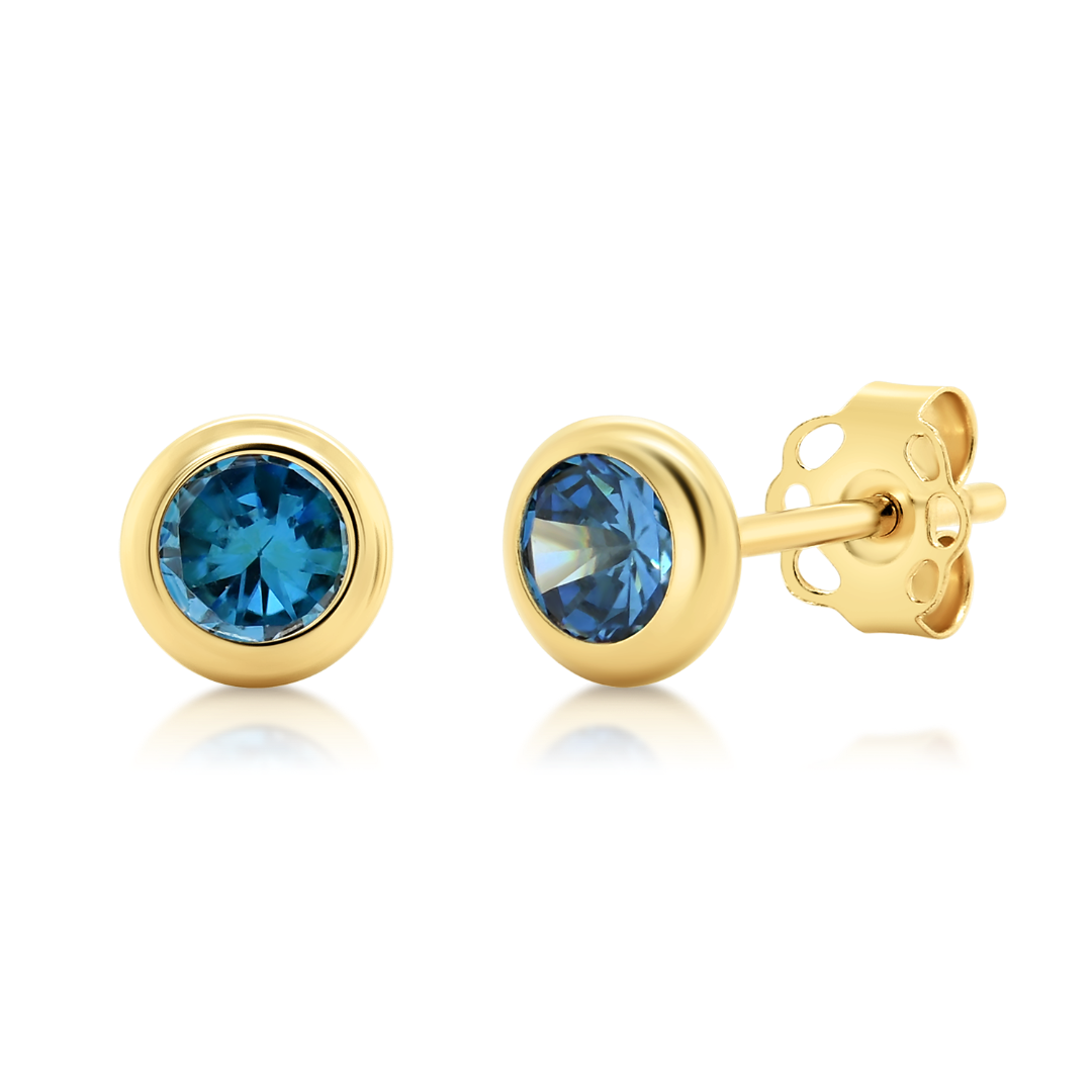 Cercei din aur galben de 14K cu pietre cubic zirconia albastre.