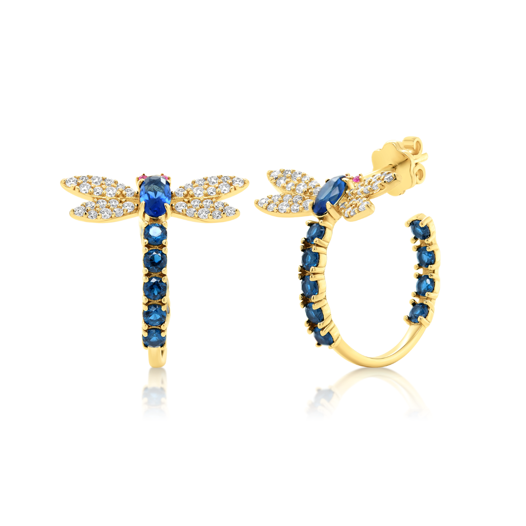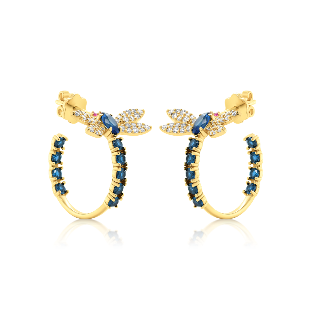 Cercei din aur galben de 14K cu pietre cubic zirconia.