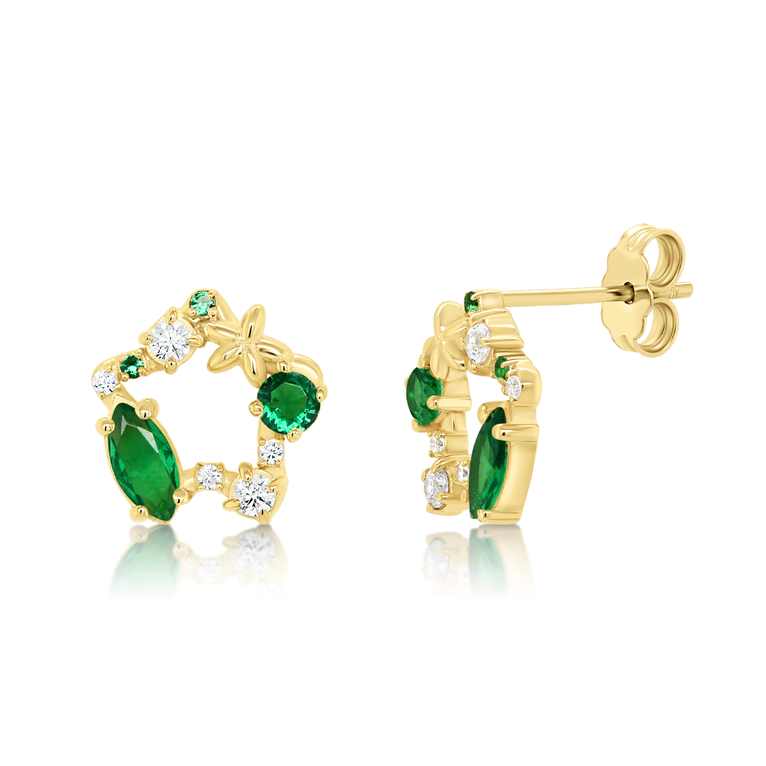 Cercei din aur galben de 14K cu pietre cubic zirconia.