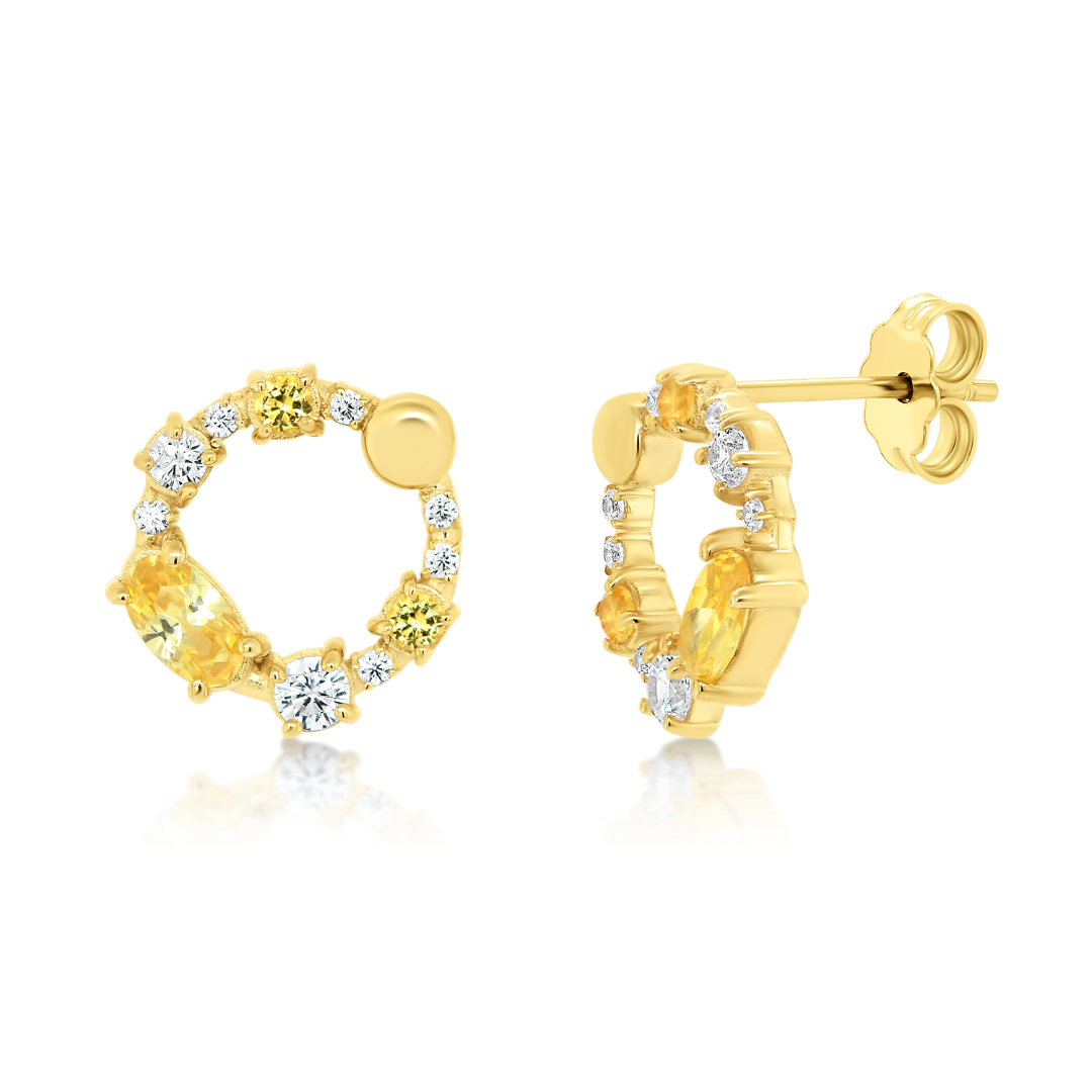 Cercei din aur galben de 14K cu pietre cubic zirconia.