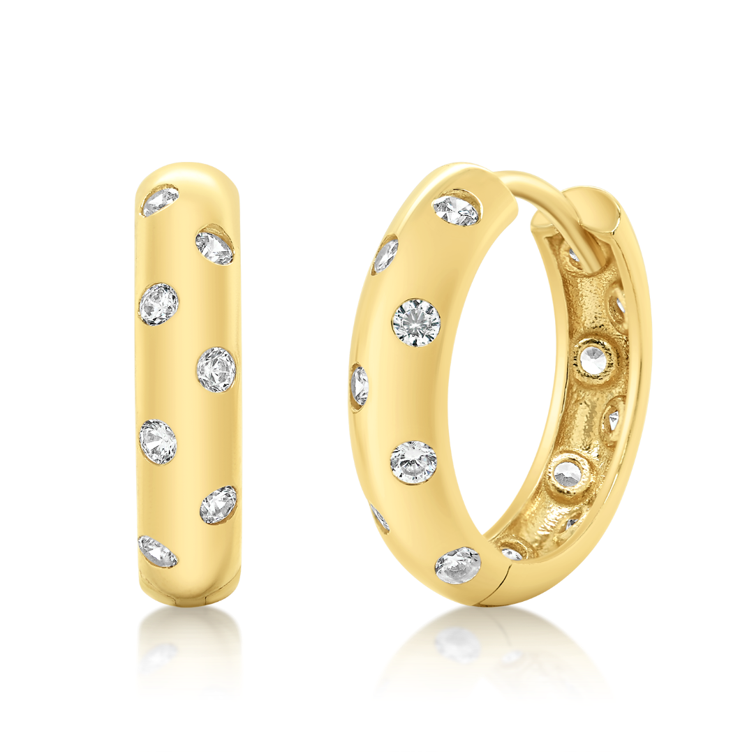 Cercei din aur galben de 14K cu pietre cubic zirconia.