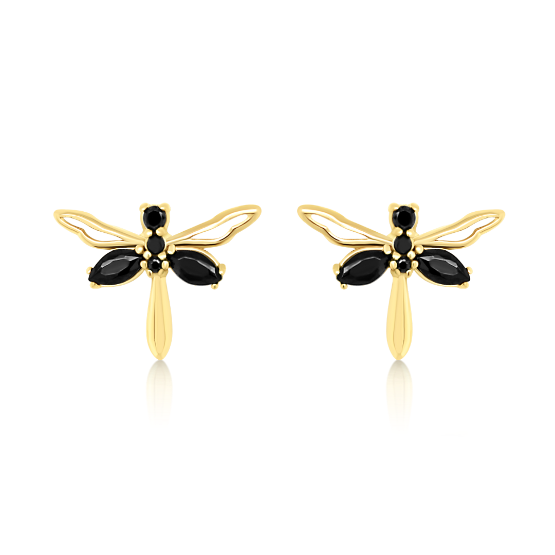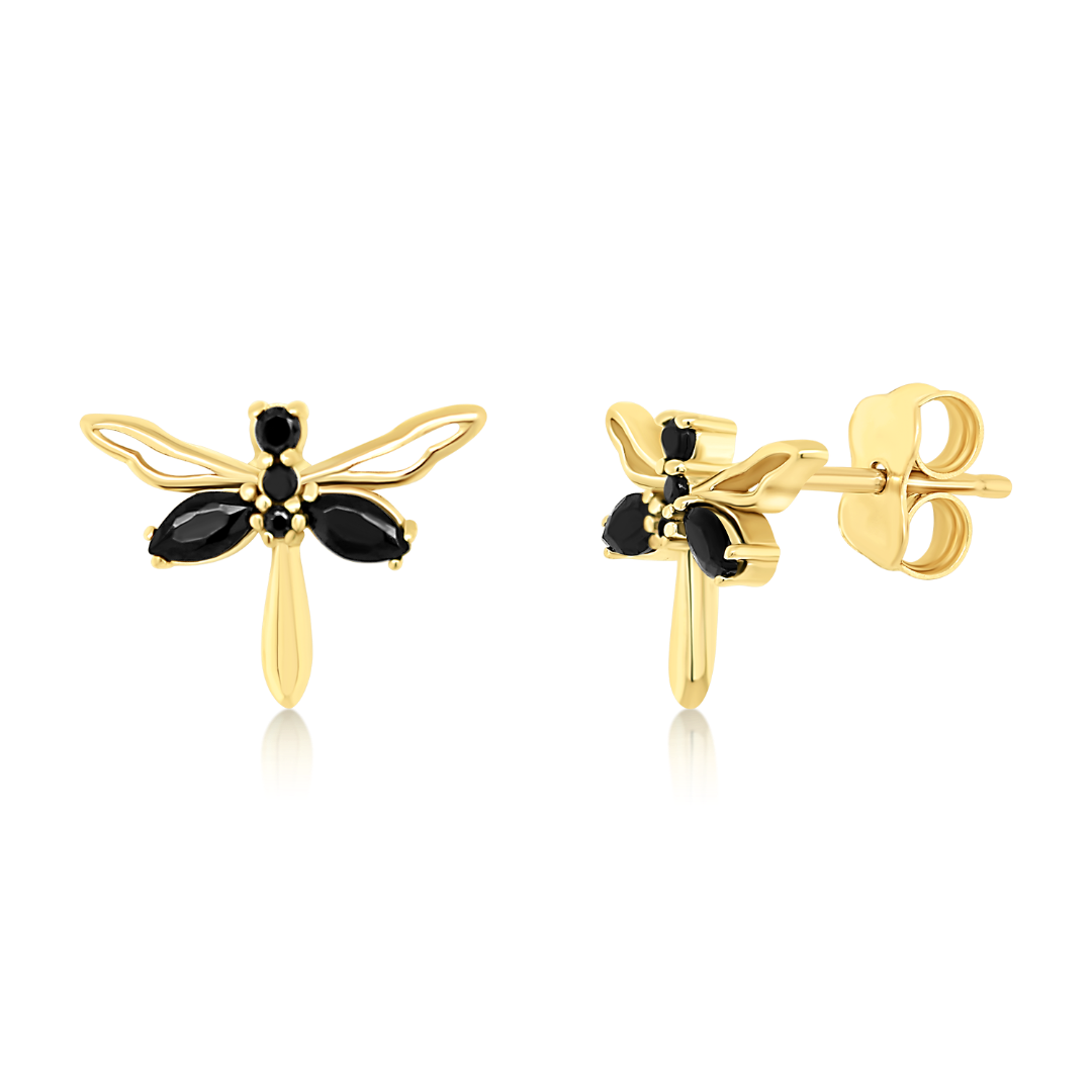 Cercei din aur galben de 14K cu pietre cubic zirconia negre.