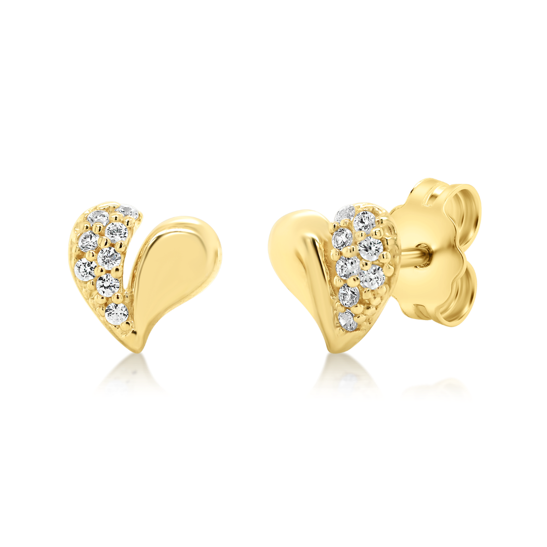 Cercei în formă de inimă din aur galben de 14K cu pietre cubic zirconia.