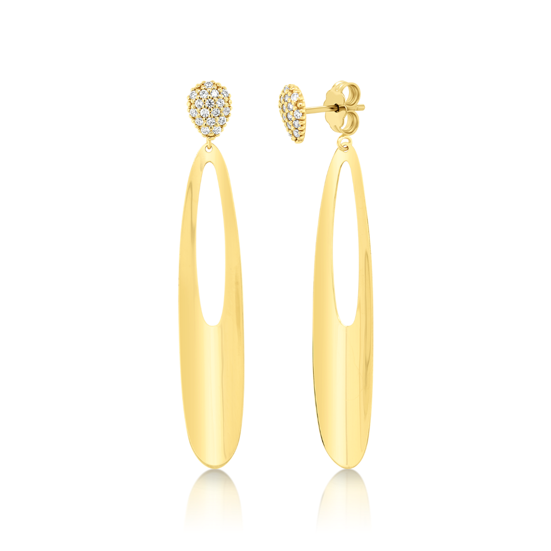 Cercei din aur galben de 14K cu pietre cubic zirconia.