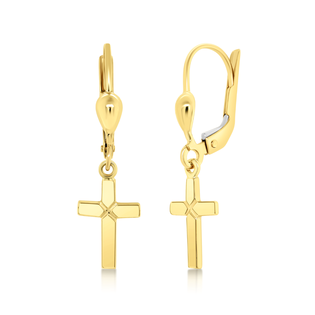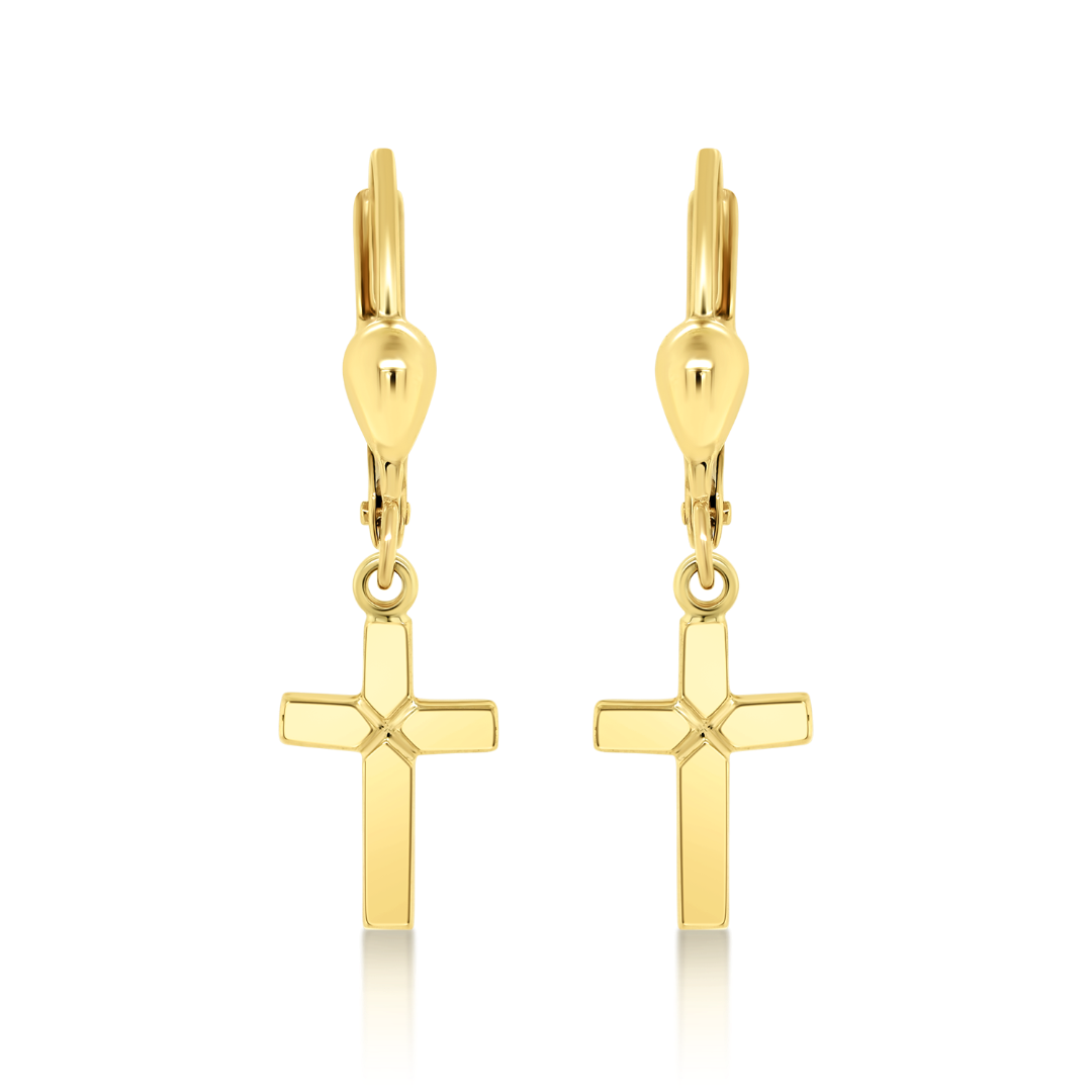 Cercei din aur galben de 14K cu element cruce.
