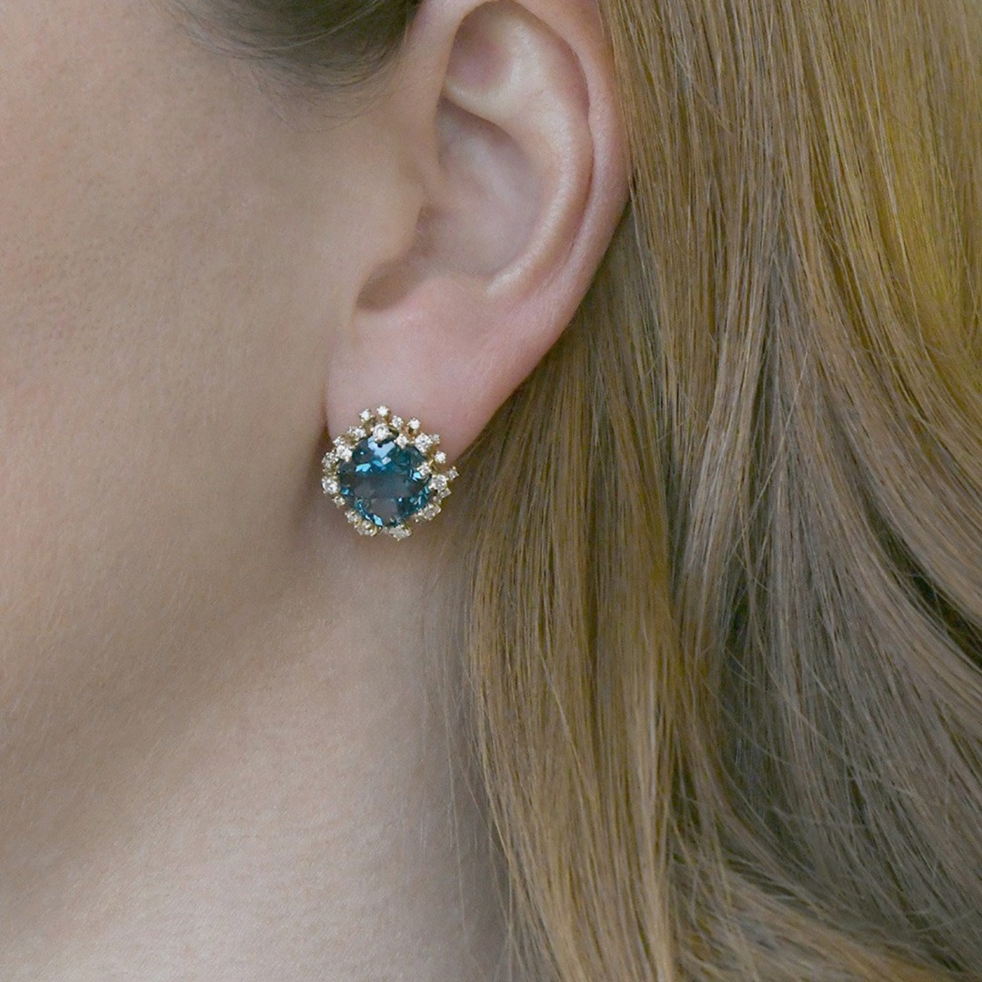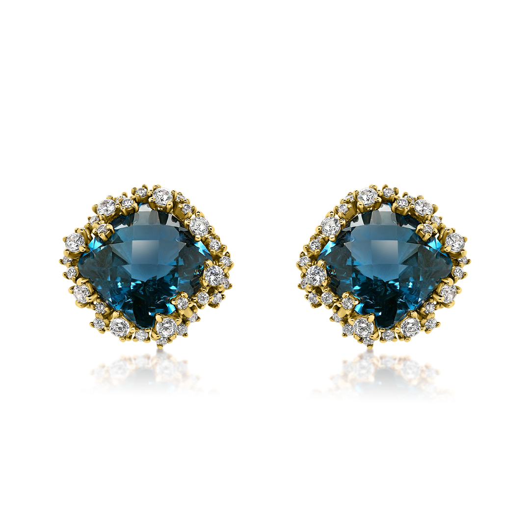 Cercei din aur galben de 14K cu pietre cubic zirconia.